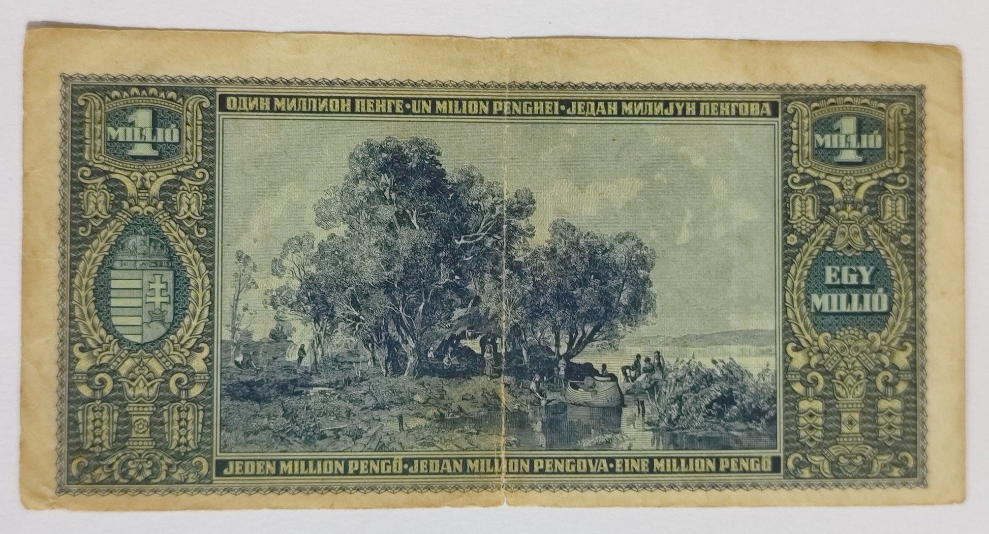 Authentic Hungary 1 Million Pengo 1945 banknote (P122 catalog reference) in used condition. Historic hyperinflation-era currency note. Perfect for world banknote collectors.