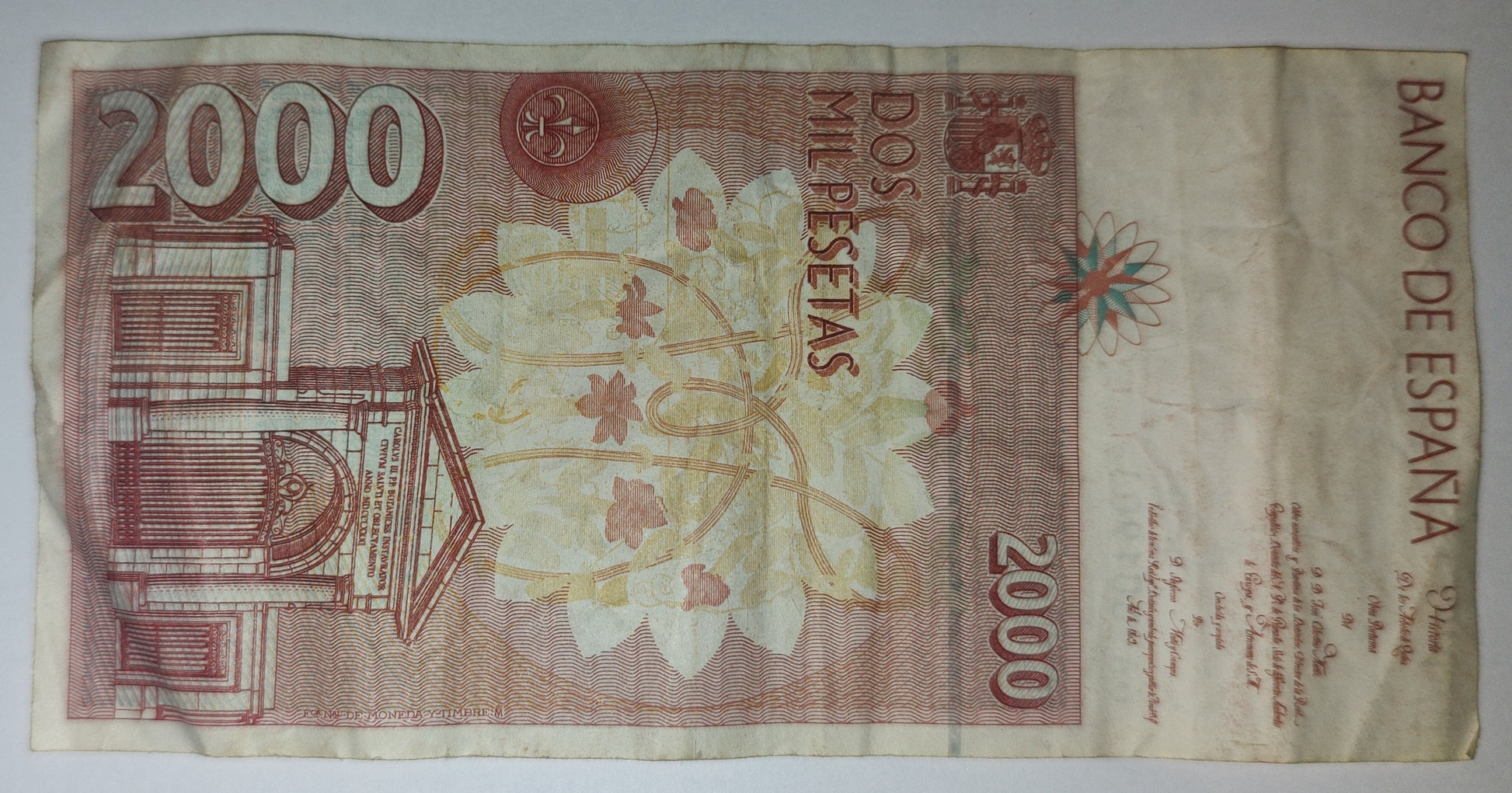 Authentic Spain 2000 Pesetas banknote from 1992 in used condition. Historic Spanish currency featuring José Celestino Mutis. Perfect for collectors of European banknotes and peseta notes.