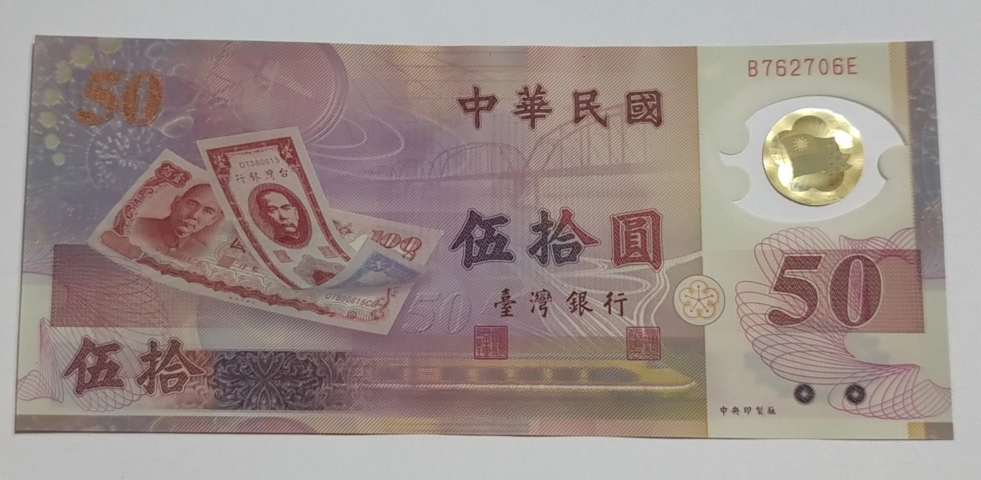 Rare Taiwan 50 Yuan 1999 polymer commemorative note in UNC condition. Perfect for currency collectors and numismatists. Authentic collectible banknote from ZealHobbieZ.