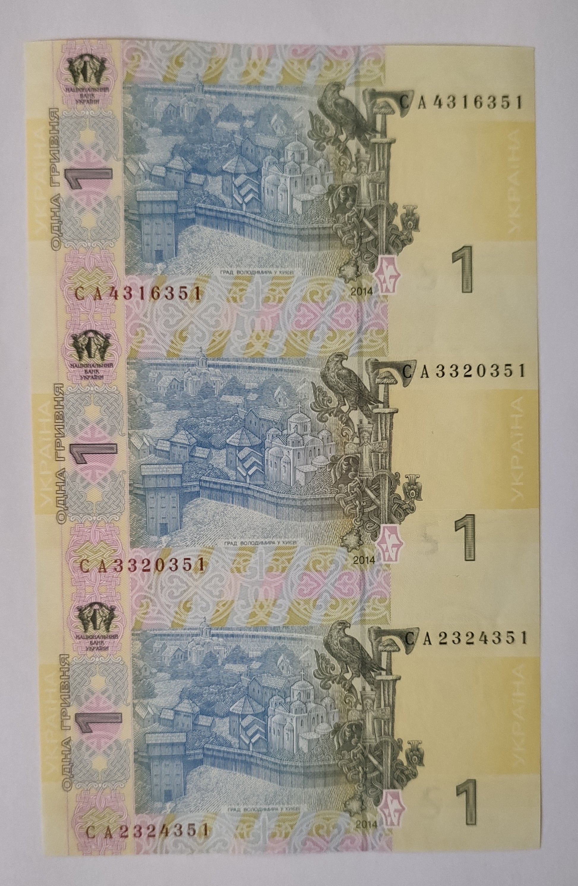 Rare Ukraine 1 hryvnia 2014 uncut sheet of 3 notes (P116A catalog). Authentic collectible banknote perfect for currency enthusiasts. Shop now at ZealHobbieZ.
