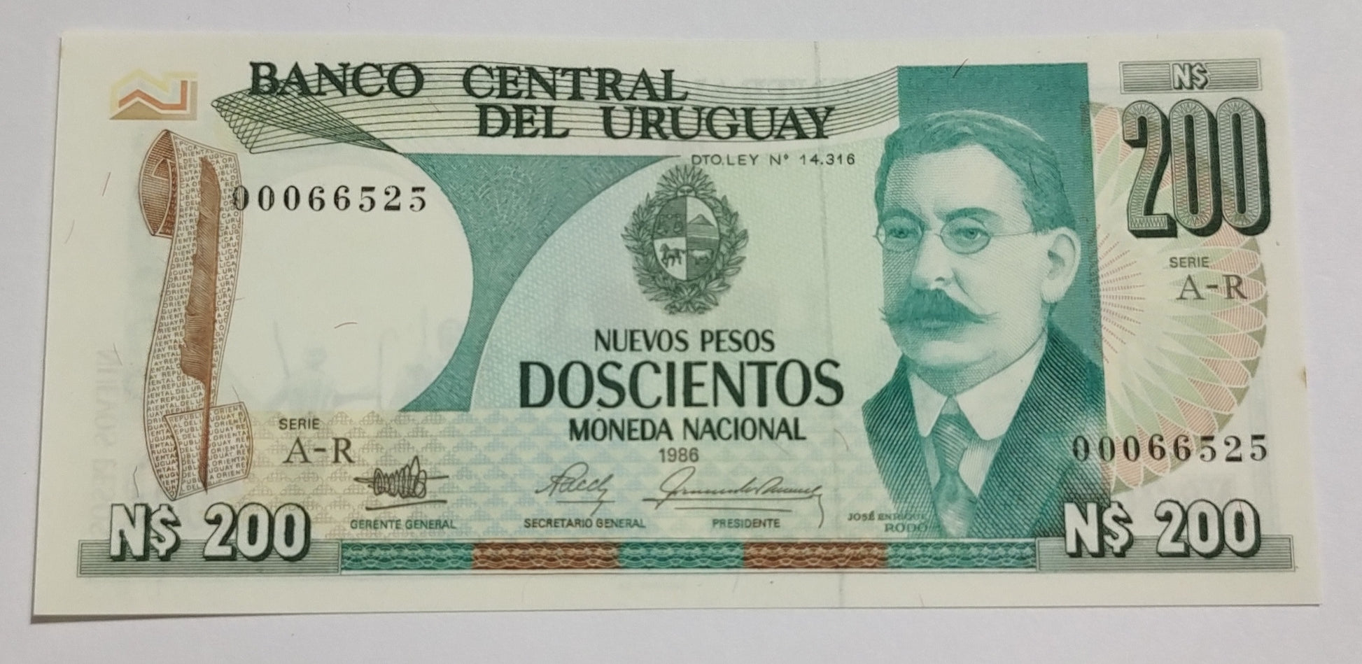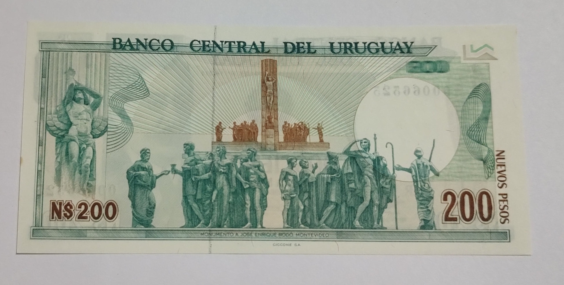 Authentic Uruguay 200 Nuevos Pesos 1986 banknote in UNC condition. Perfect for collectors of South American currency. Premium quality collectible from ZealHobbieZ.